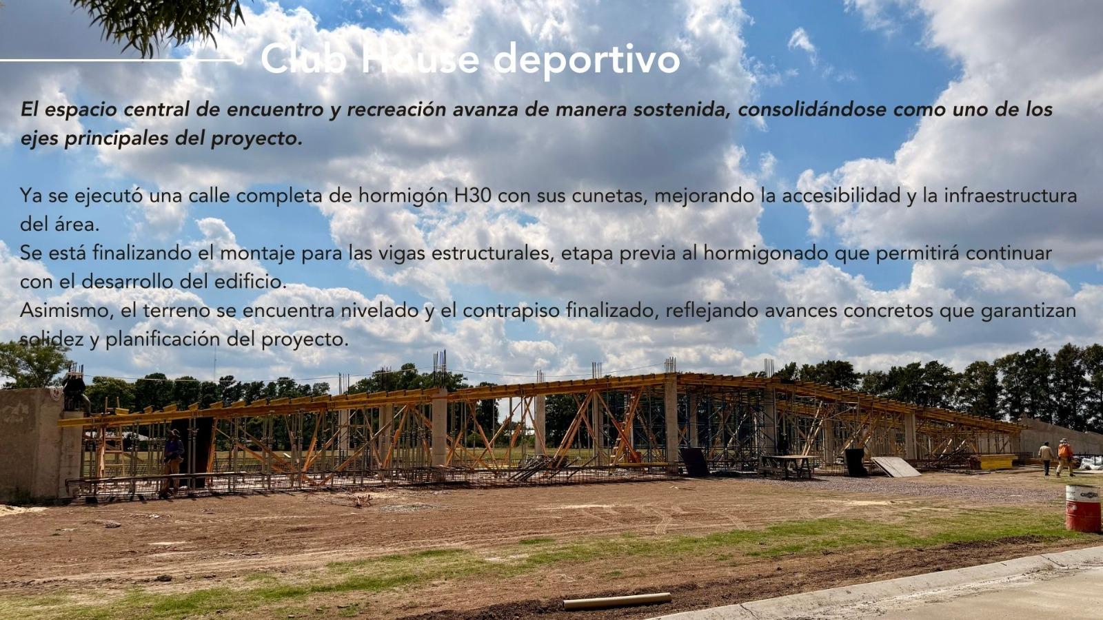 Área deportiva: pista de atletismo, helipuerto, canchas de futbol 5, 7, 11, chanchas de básquet, canchas de tenis profesional, canchas de paddle, canchas de beach vóley. Club house deportivo.