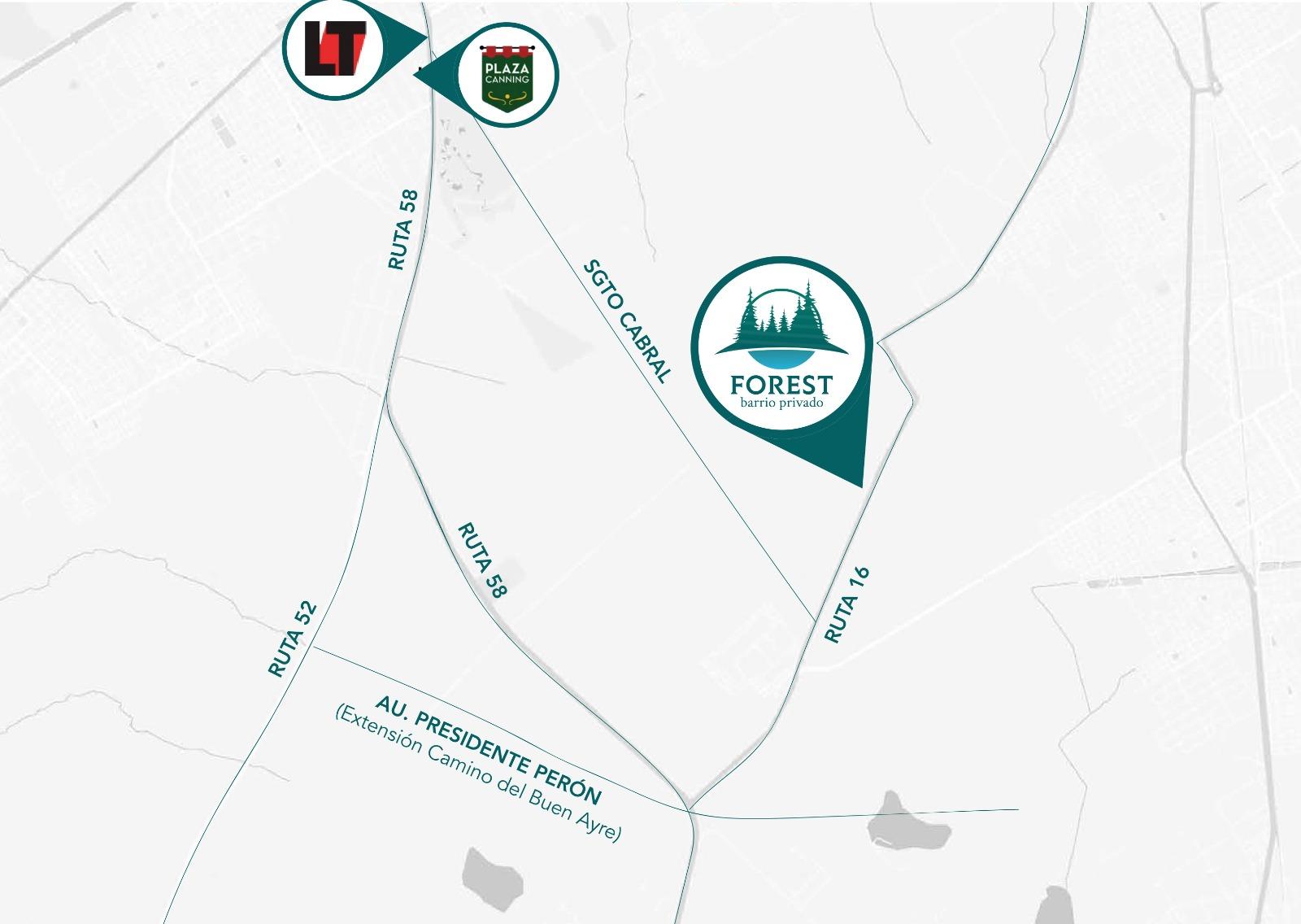 Ubicación estratégica, cercano a dos puntos comerciales importantes como lo son Las Toscas y Plaza Canning. Referencia de distancia: A 5 minutos del acceso a la Nueva Autopista Presidente Perón (extensión Camino del Buen Ayre) y a 45 minutos de CABA.