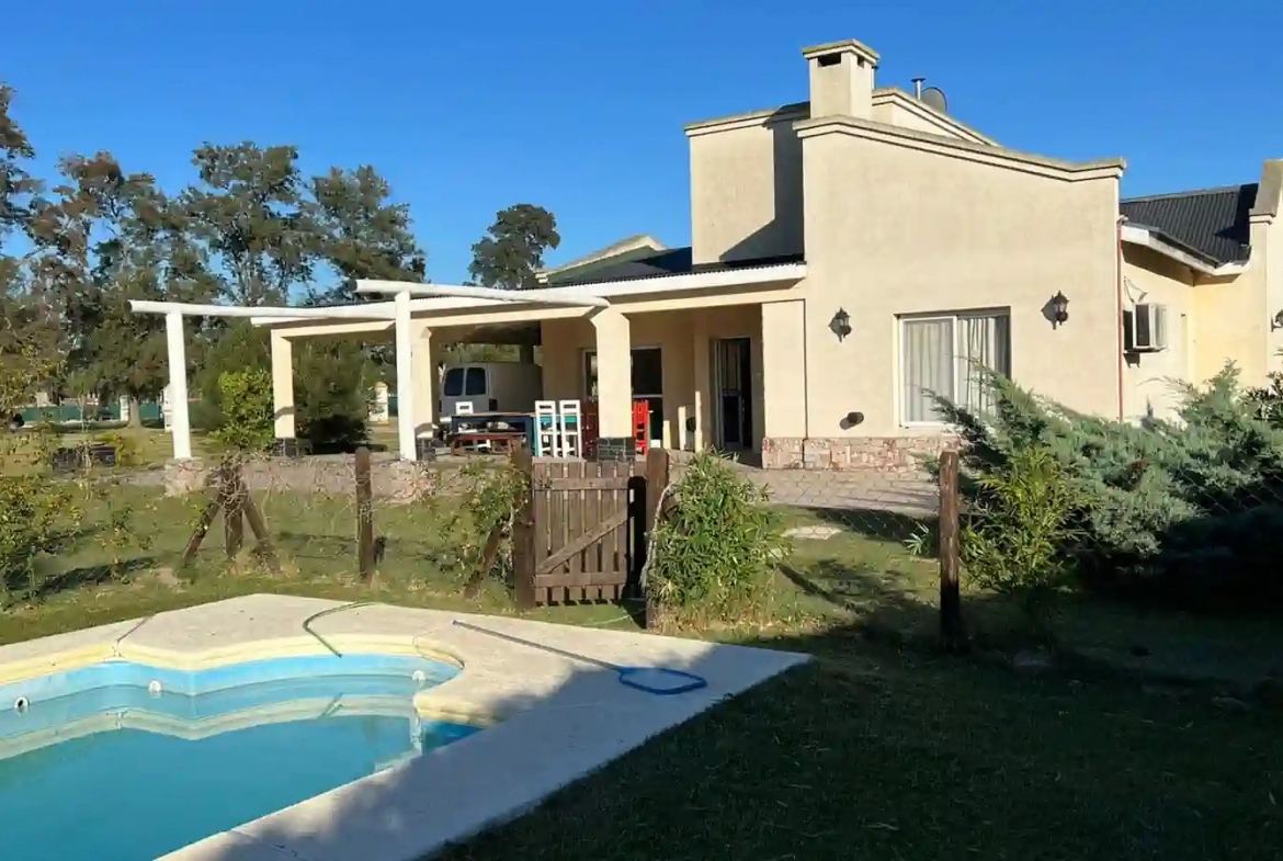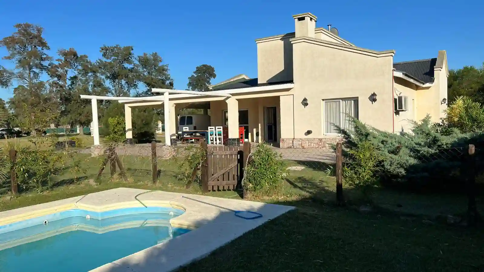 Magnífica Casa Estilo Chalet en una planta de excelente distribución, con exterior pintado, puerta en madera y techo a una agua de revestimiento chapa, de 4 Ambientes en Venta, con excelente ubicación central en Barrio Privado Campo Daromy, San Vicente