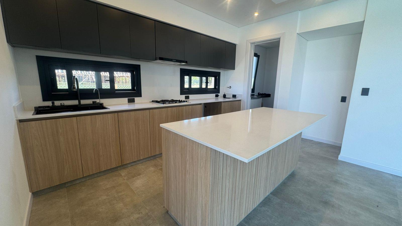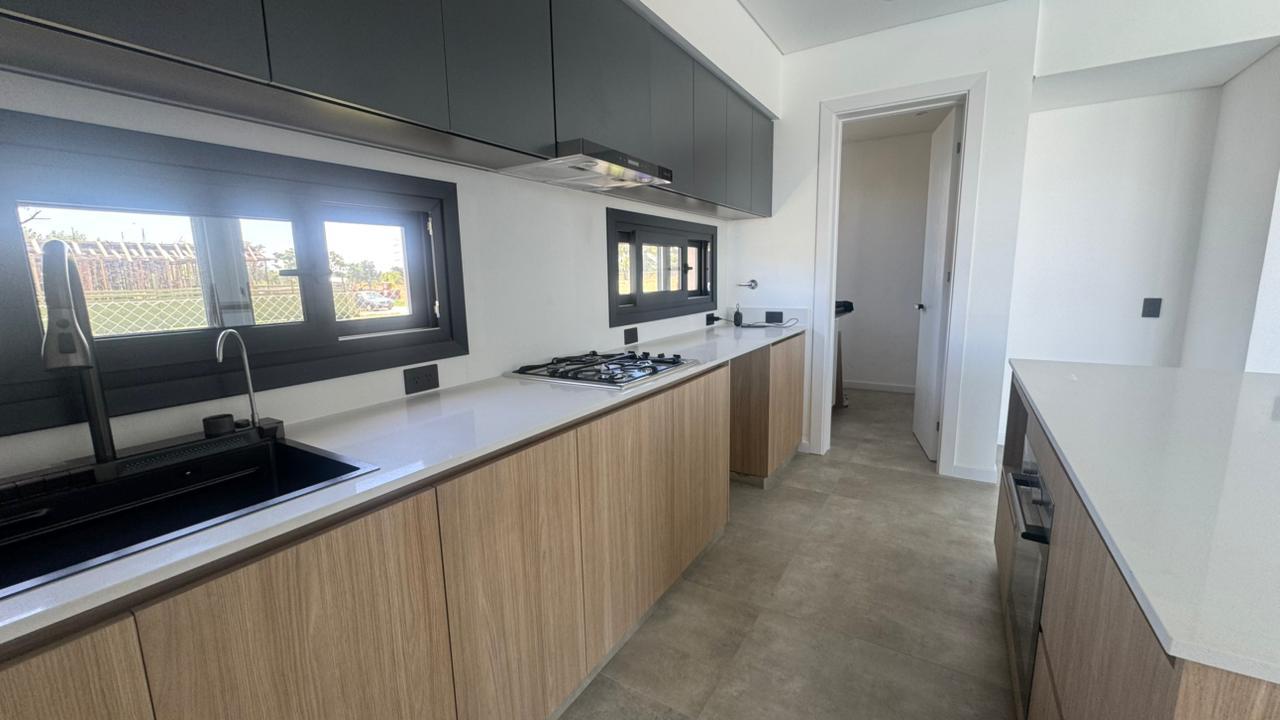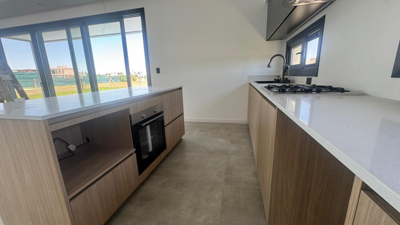 La cocina moderna con isla fue pensada para disfrutar y compartir. Equipada con anafe a gas, horno eléctrico Domec, spar Drean y bacha inteligente, combina estética y funcionalidad. La gran despensa en planta baja aporta orden y practicidad, acompañada por un amplio toilette de recepción.