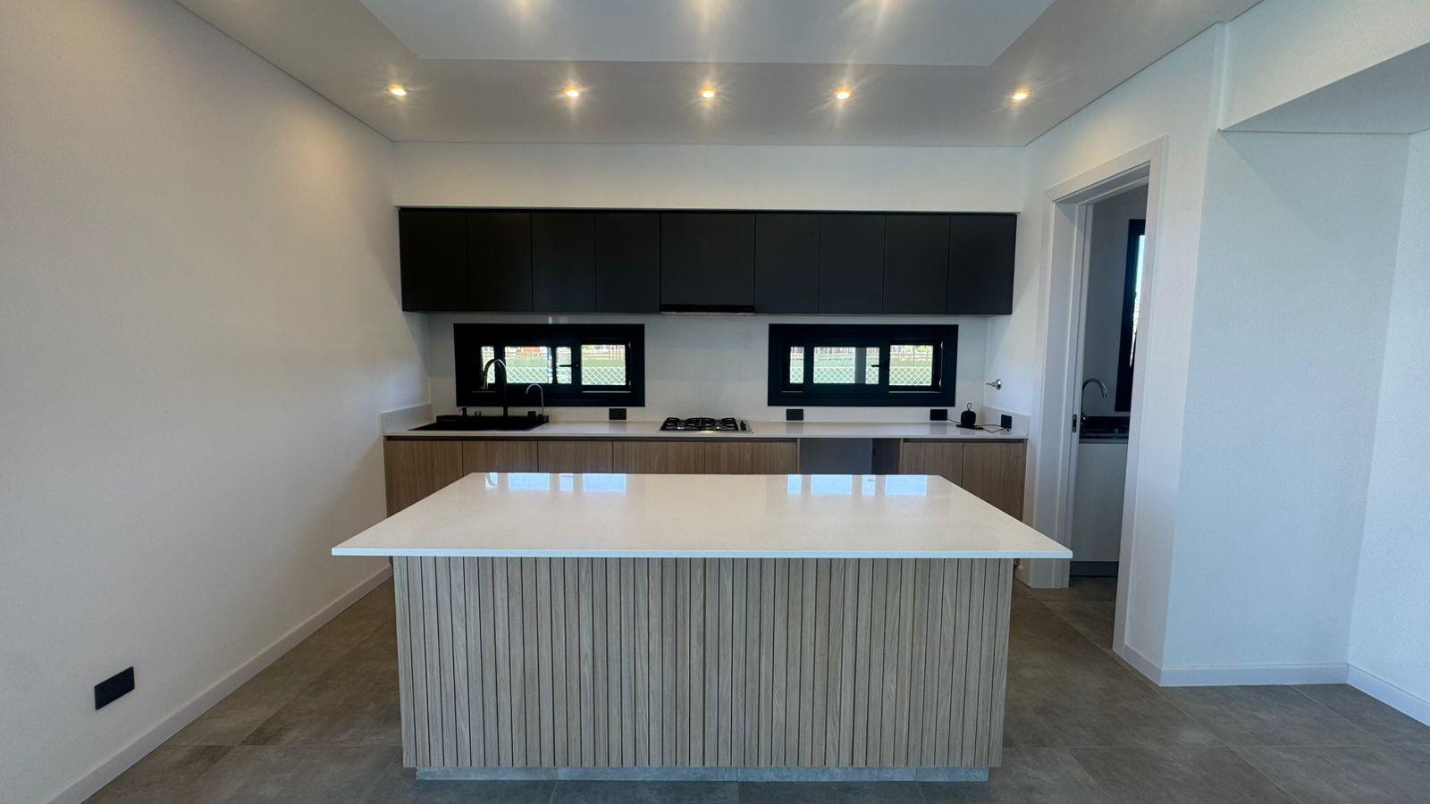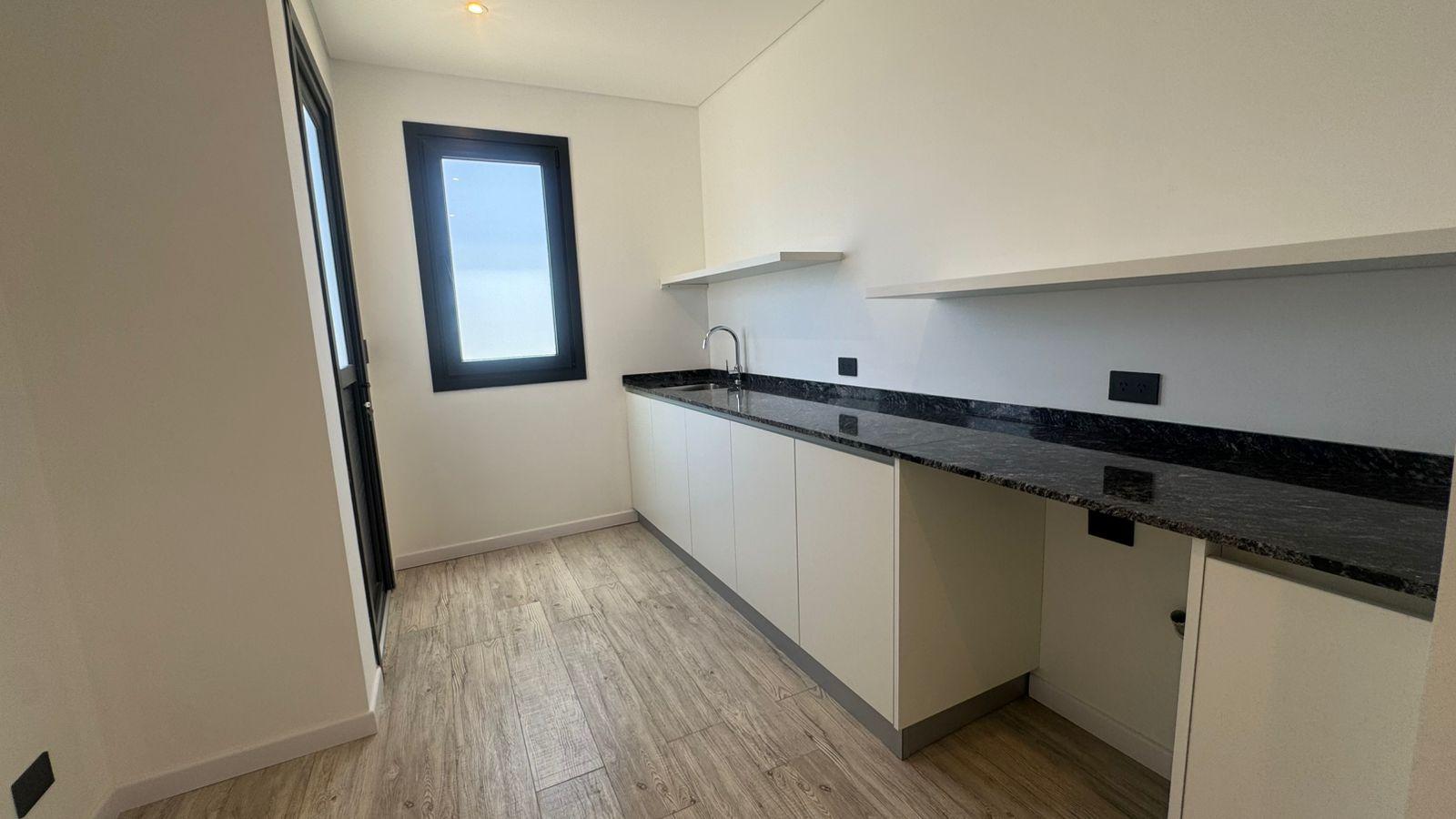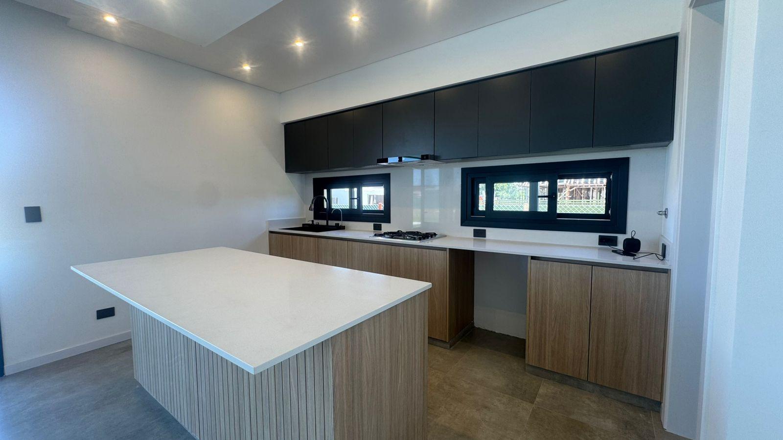 La cocina moderna con isla fue pensada para disfrutar y compartir. Equipada con anafe a gas, horno eléctrico Domec, spar Drean y bacha inteligente, combina estética y funcionalidad. La gran despensa en planta baja aporta orden y practicidad, acompañada por un amplio toilette de recepción.
