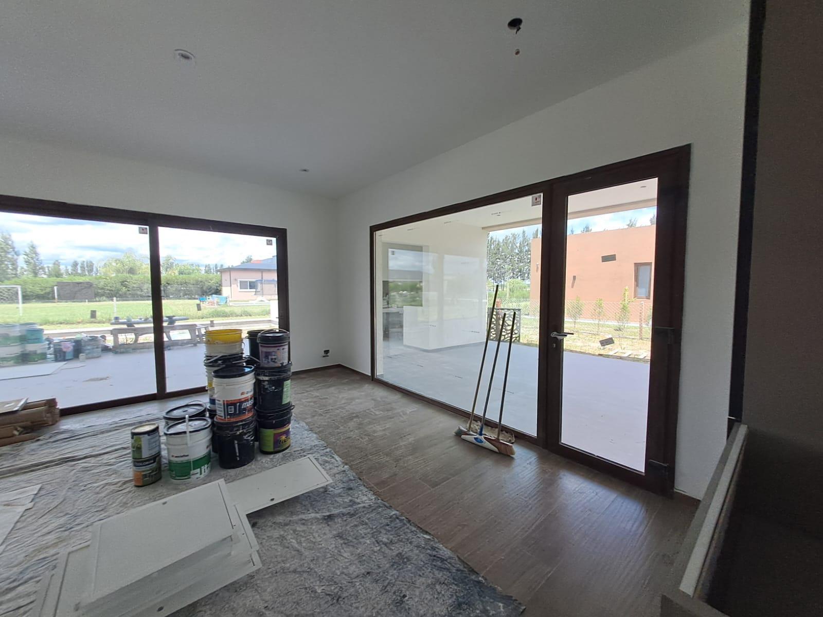 La vivienda se desarrolla en una sola planta, priorizando la comodidad y el disfrute diario. Las alturas generosas en sus techos, aportan una grata sensación de amplitud, mientras que las aberturas DVH simil madera con doble cristal llenan de luz cada ambiente y aseguran un aislamiento térmico acústico ideal.