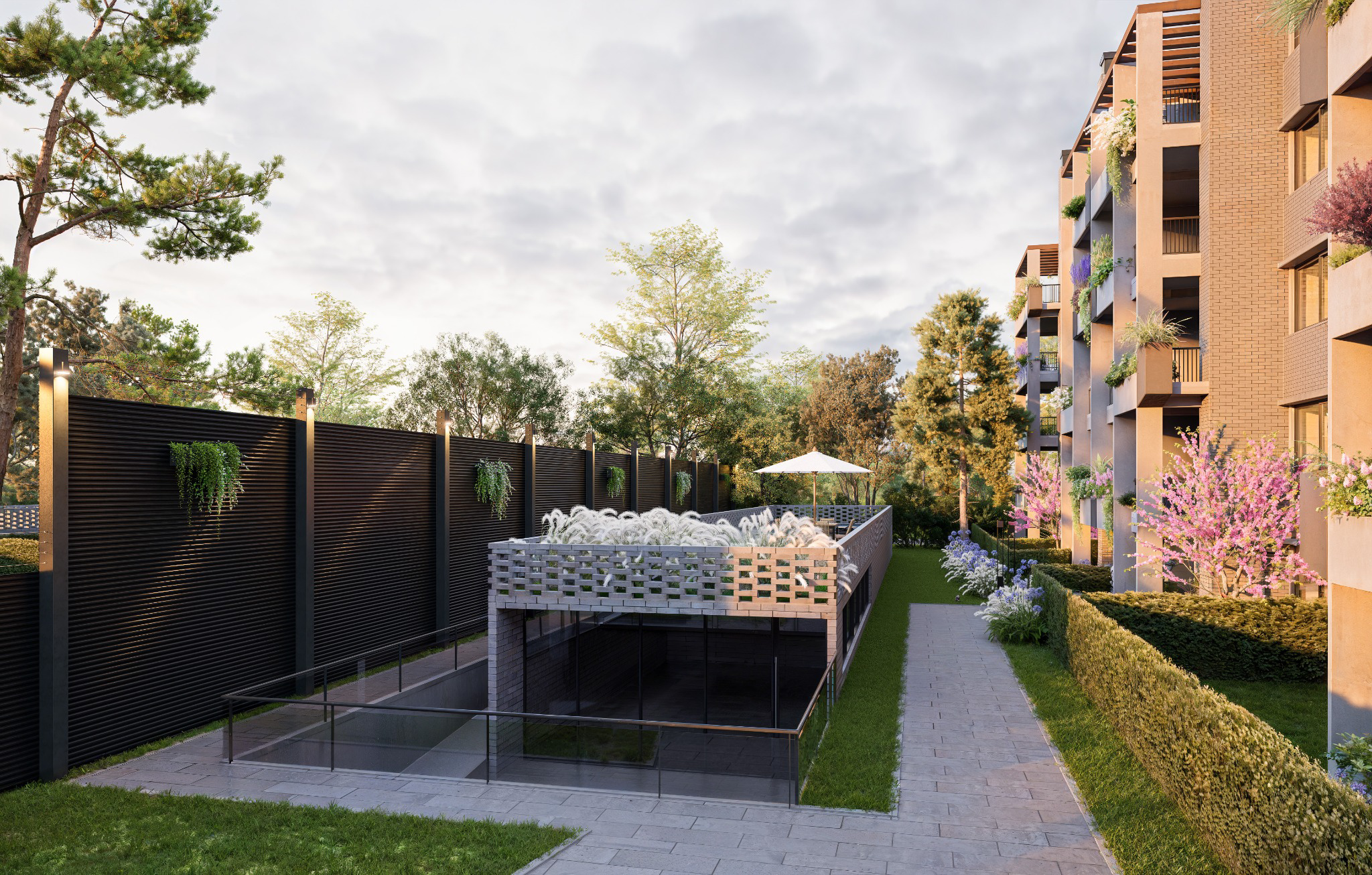 – 10 etapas/edificios de condominio dentro de un lote propio rodeado de una arboleda añeja.