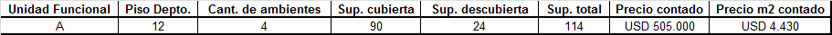 Piso 12: 2 unidades (un depto de 4 amb y un depto de 3 amb).
