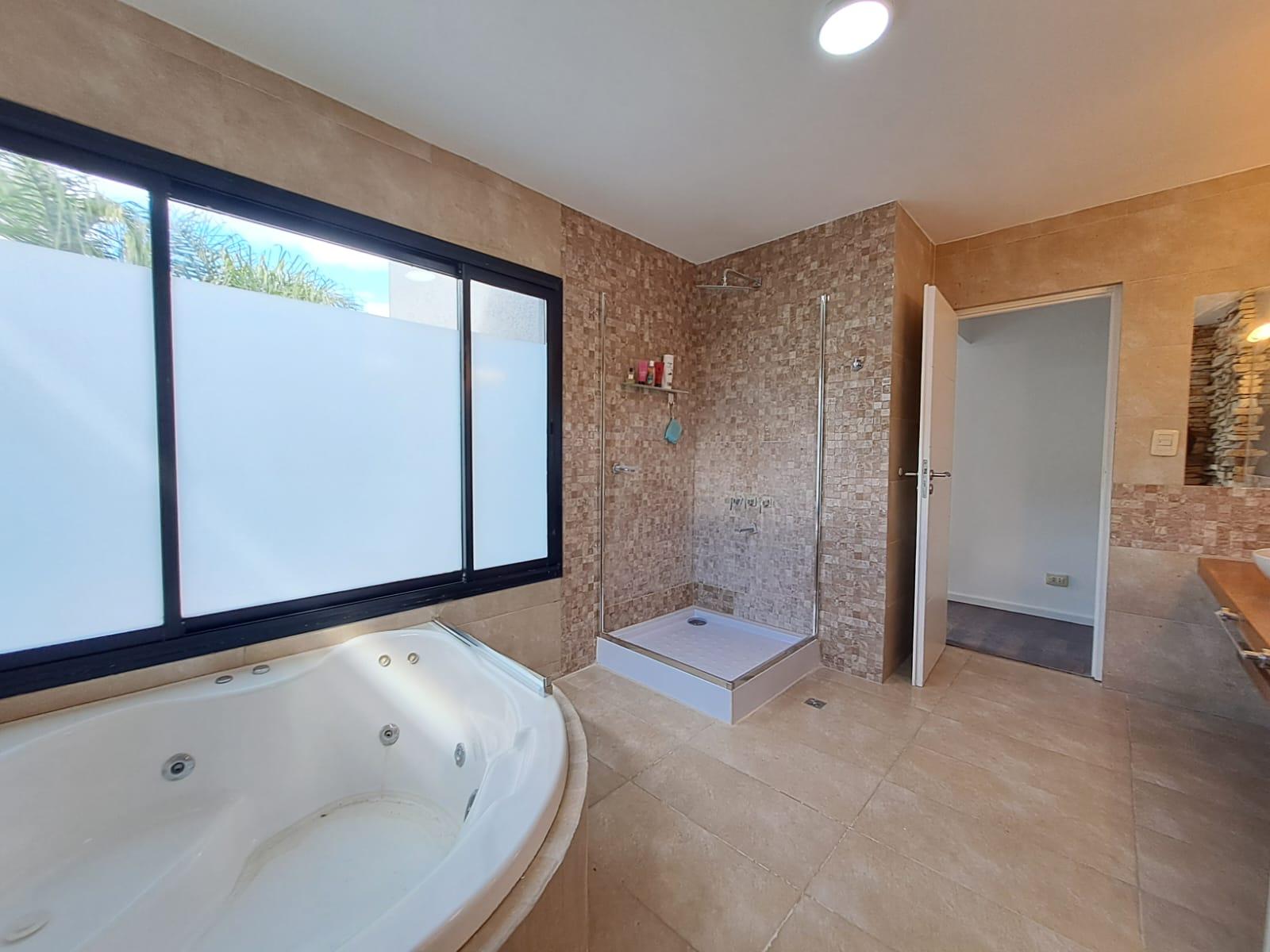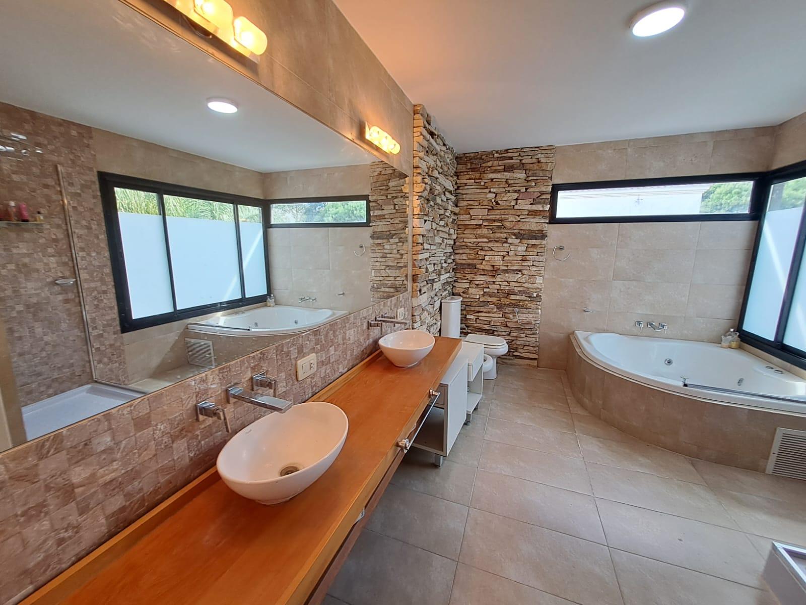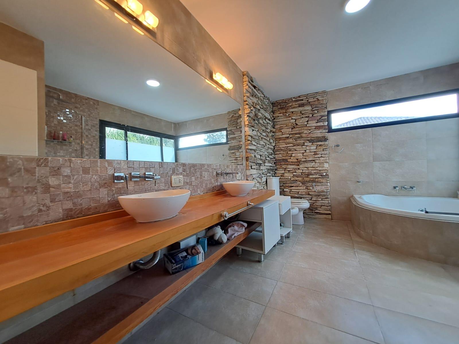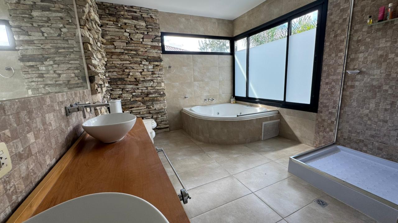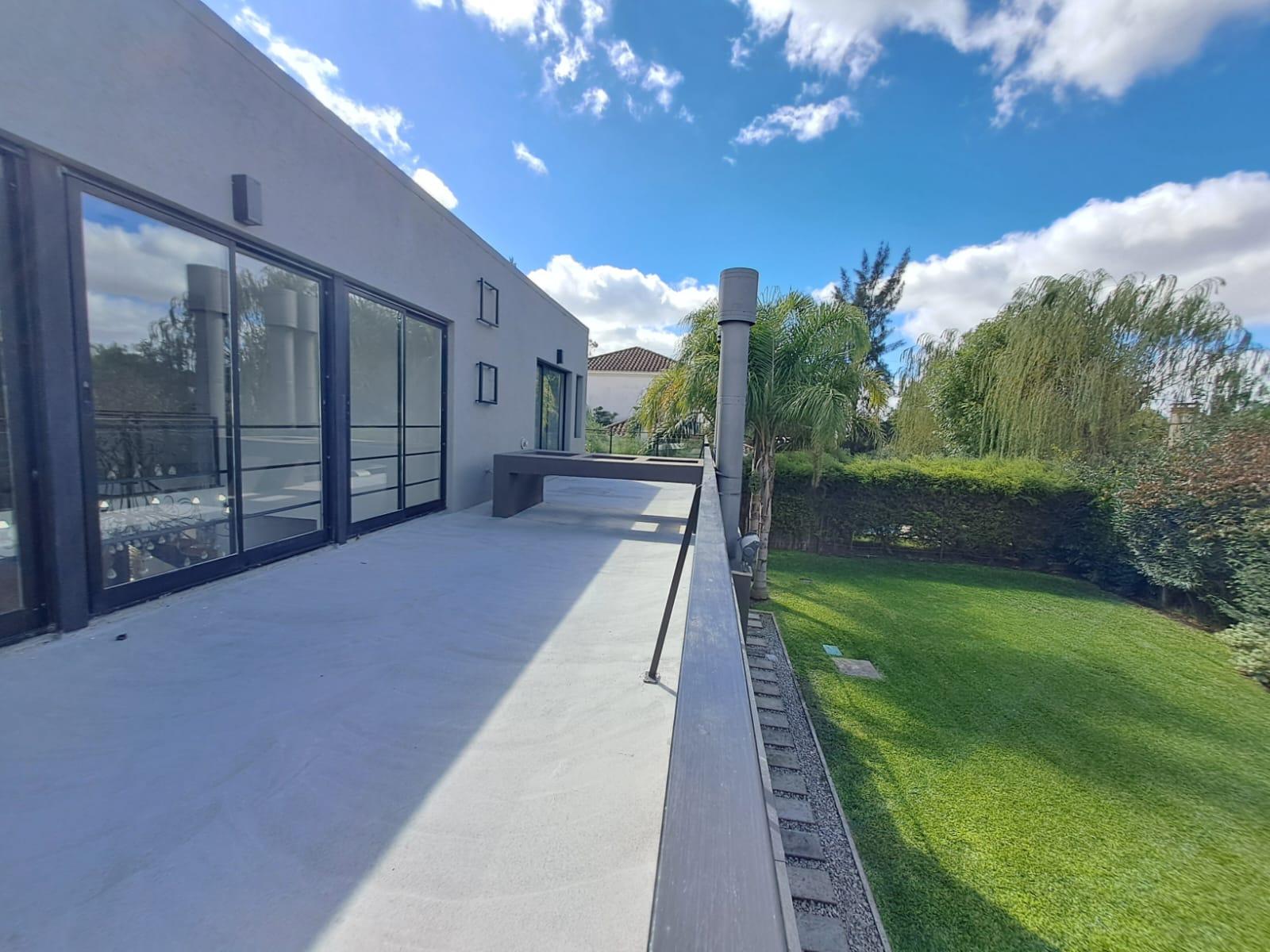 El exterior es una verdadera extensión de la casa: un jardín totalmente parquizado, con riego automatizado e iluminación, que cambia con la luz del día y se transforma por la noche. La piscina con iluminación LED se integra al entorno, ofreciendo un espacio ideal para disfrutar en cualquier momento.