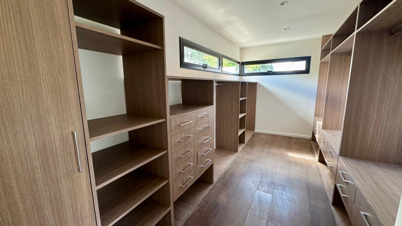En planta alta, tres dormitorios con placard mantienen la misma impronta de luz y conexión. La suite principal, con vestidor de diseño, se convierte en un refugio íntimo con vistas abiertas al entorno. Un amplio hall de distribución, ideal para escritorio, invita a trabajar o crear en un ambiente rodeado de luz natural y visuales panorámicas que inspiran en cada momento.