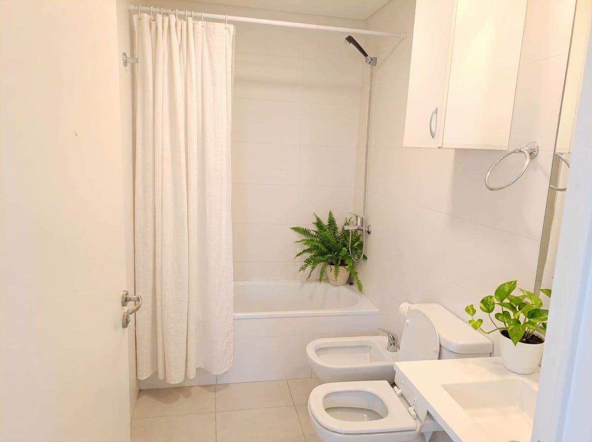 – Baño instalado con bañera y sanitarios y grifería Ferrum.