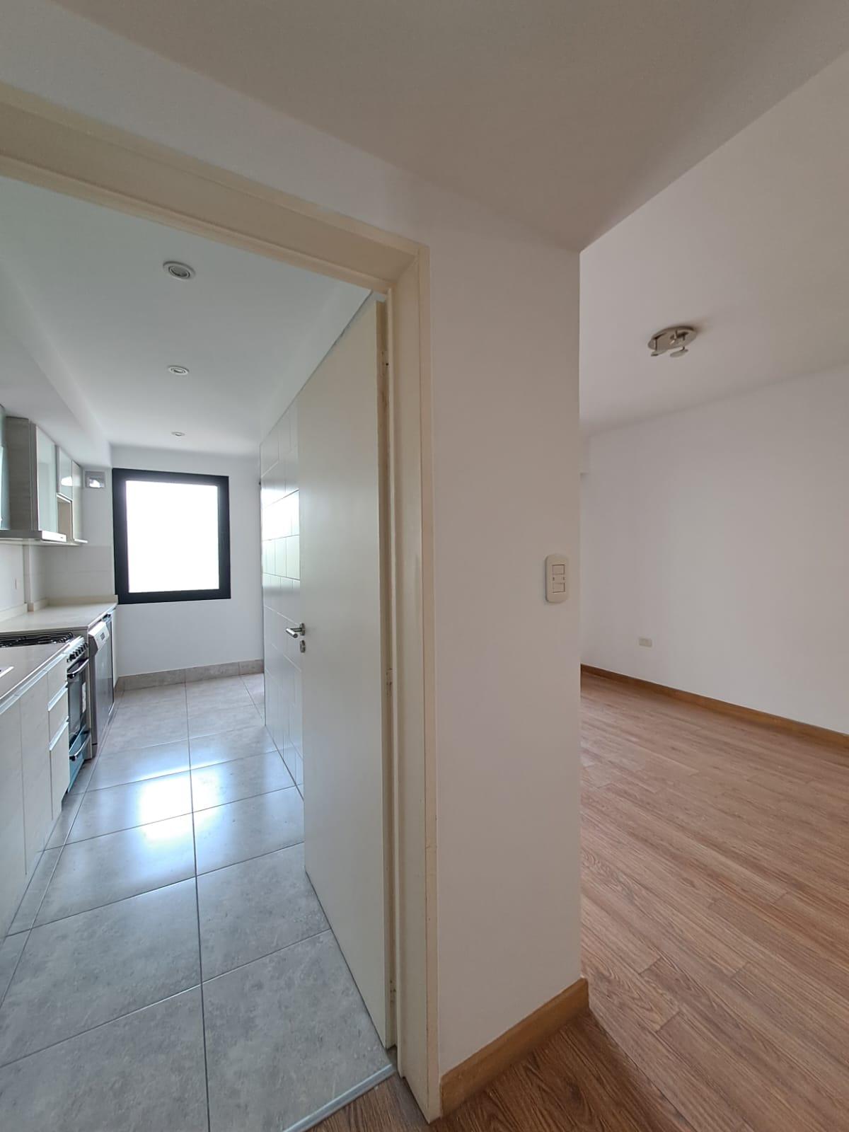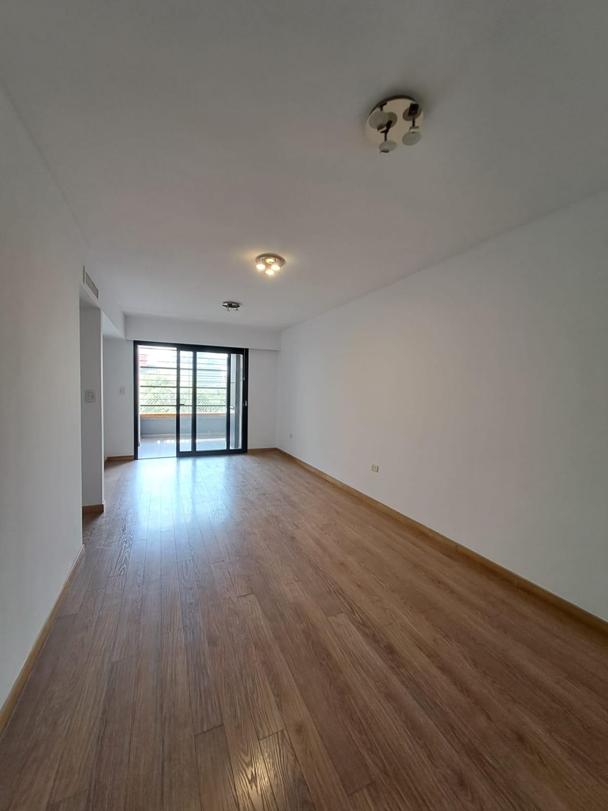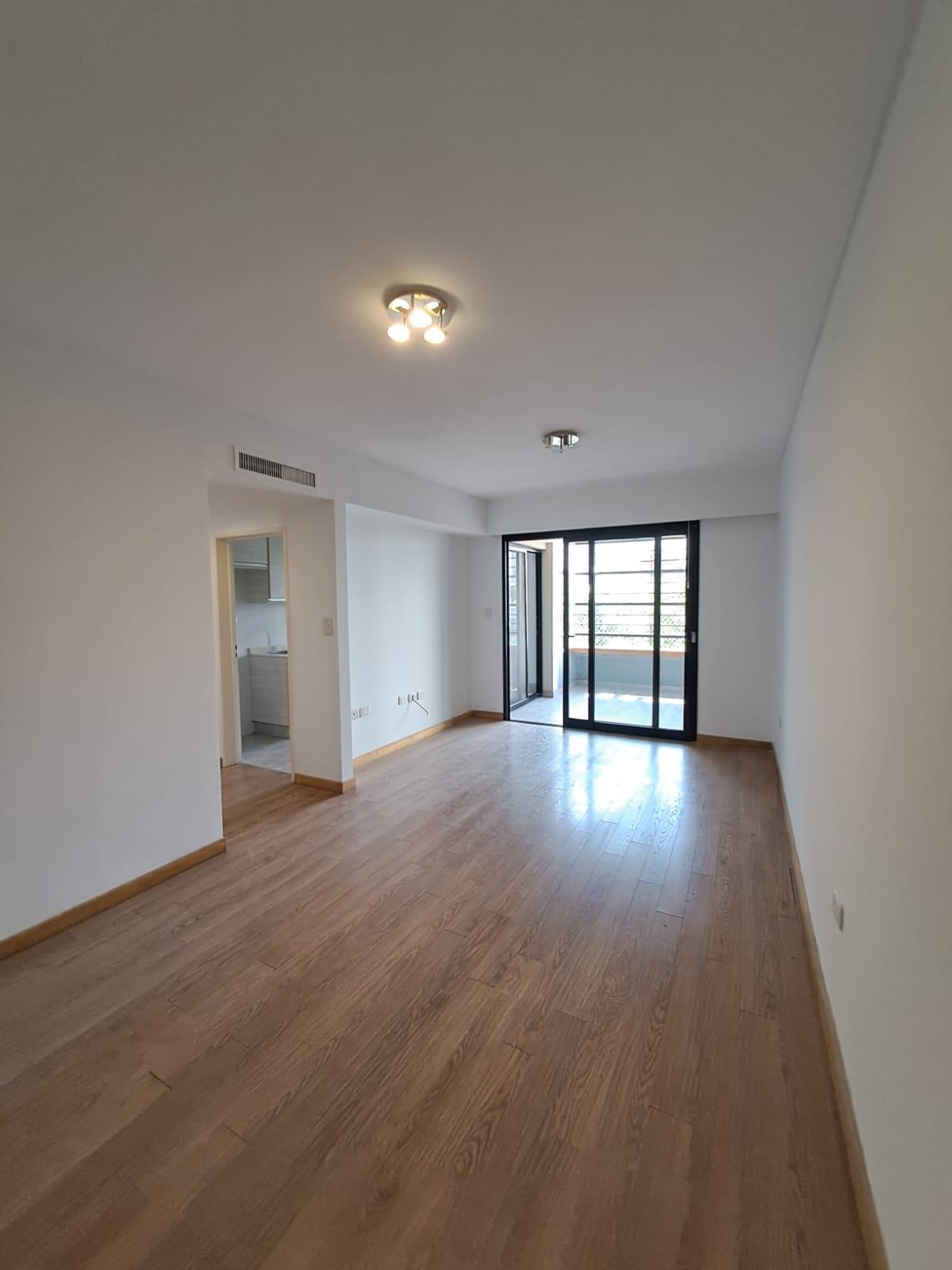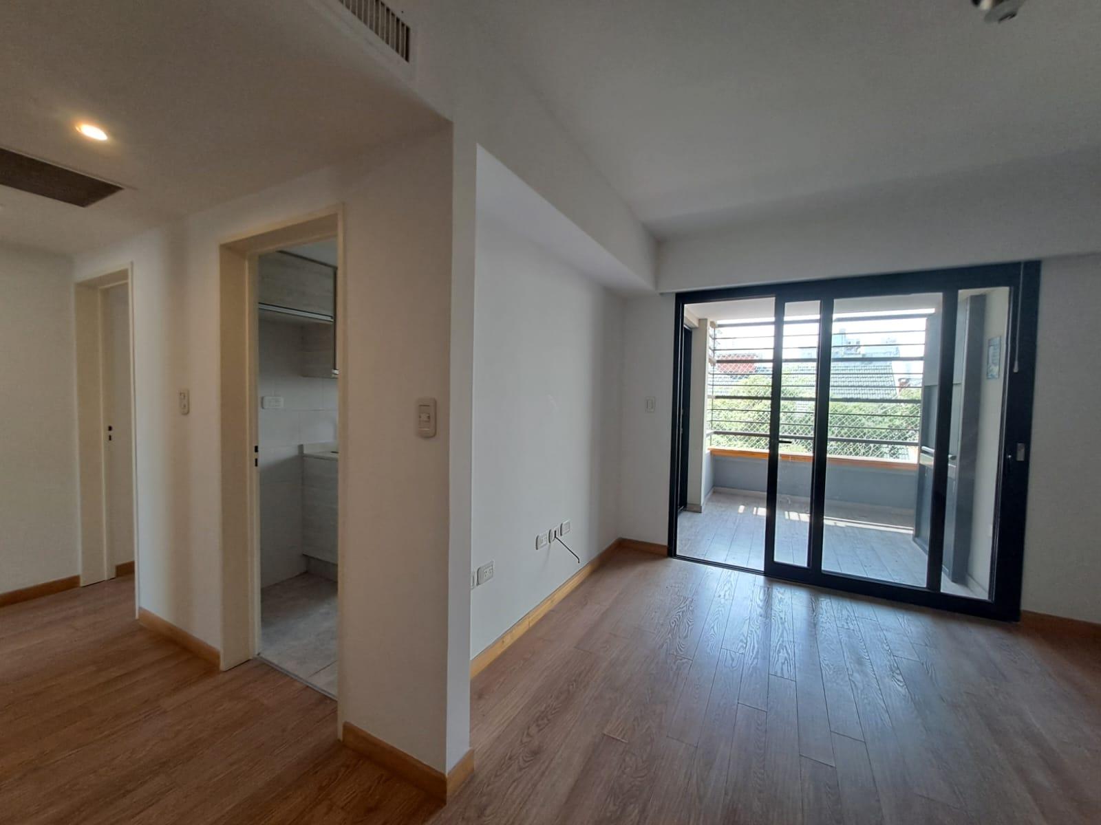 Living comedor con salida al balcón con parrilla. Ingresando a la unidad nos encontramos con un cómodo living comedor con salida a un balcón corrido.